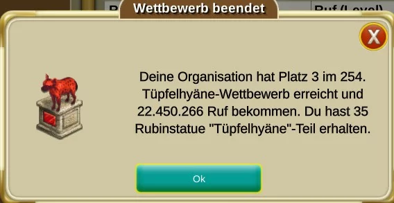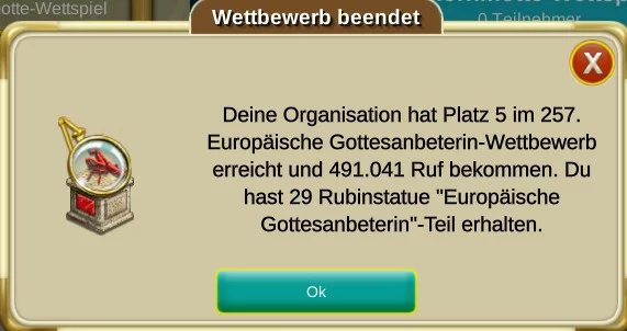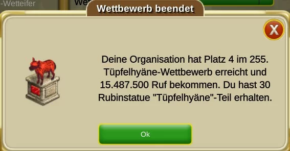 Statuenteile bekommen aber ausschließlich die Mitglieder, die bereits beim Beginn des Wettbewerbs in der Orga sind.