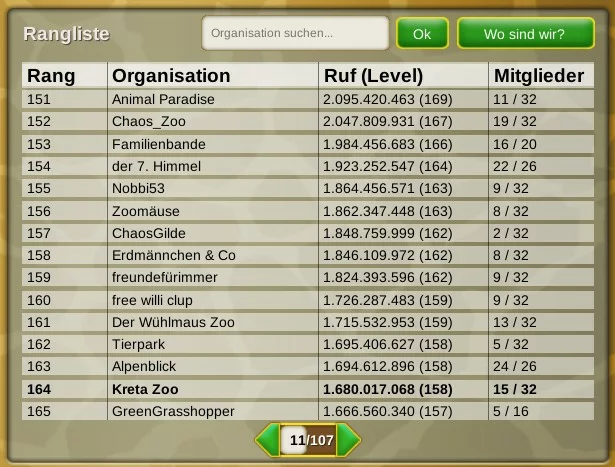Für den Orga-Wettbewerb stehen immer 5 verschiedene Tiere zur Auswahl. Das jeweilige Tier wird dann von den Orga-Mitgliedern gezüchtet, wobei jeder versucht, so viel wie möglich zu züchten, was dann wiederum fast ein kleiner interner Wettbewerb ist. Die Babys benötigen dann 7 Tage bis sie ausgewachsen sind. Diese nimmt man dann um mehrere Zuchtpaare zu bekommen, oder sie gleich ins Orga-Lager schickt, wo sie dann auf das Wettbewerbs-Ende warten.